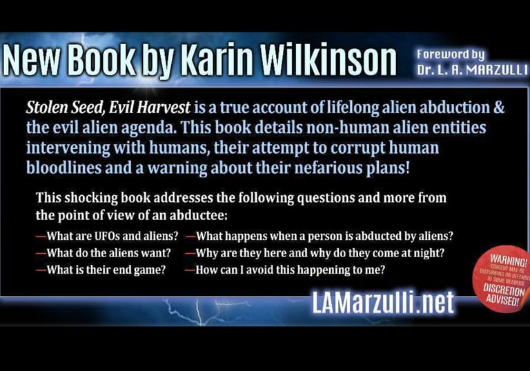 Experience the world of UAP phenomena through the lens of Karin Wilkinson in her newest book, Stolen Seed, Evil Harvest.
